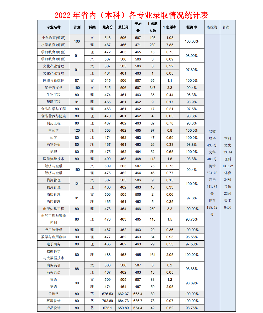 2022年 : 亳州学院2022年省内(本科)录取情况统计表 / 亳州学院2022年省外(本科)录取情况统计表