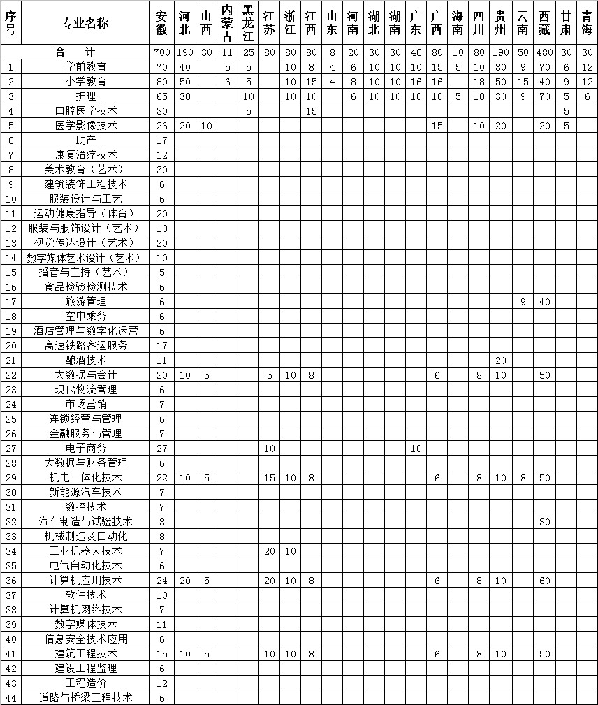 2022年 : 淮北职业技术学院-2022年招生计划