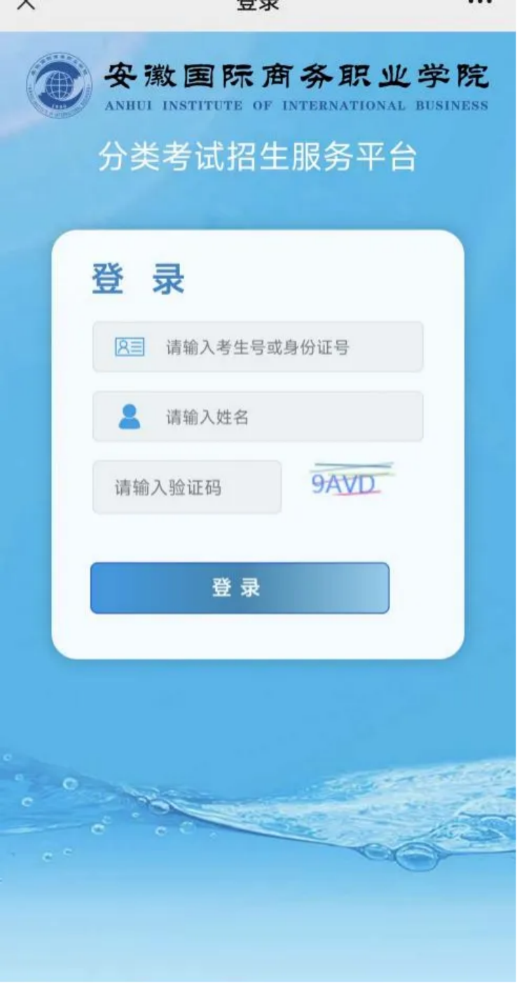 (1)PC端登录:请使用IE9.0以上、火狐、Google、360等主流浏览器访问学院官网首页,点击“2024分类考试招生考生服务平台”按键或直接访问:http://flzs.ahiib.edu.cn/;(2)登录信息:按照提示输入“考生号/身份证号”、“考生姓名”、“验证码”进入平台;