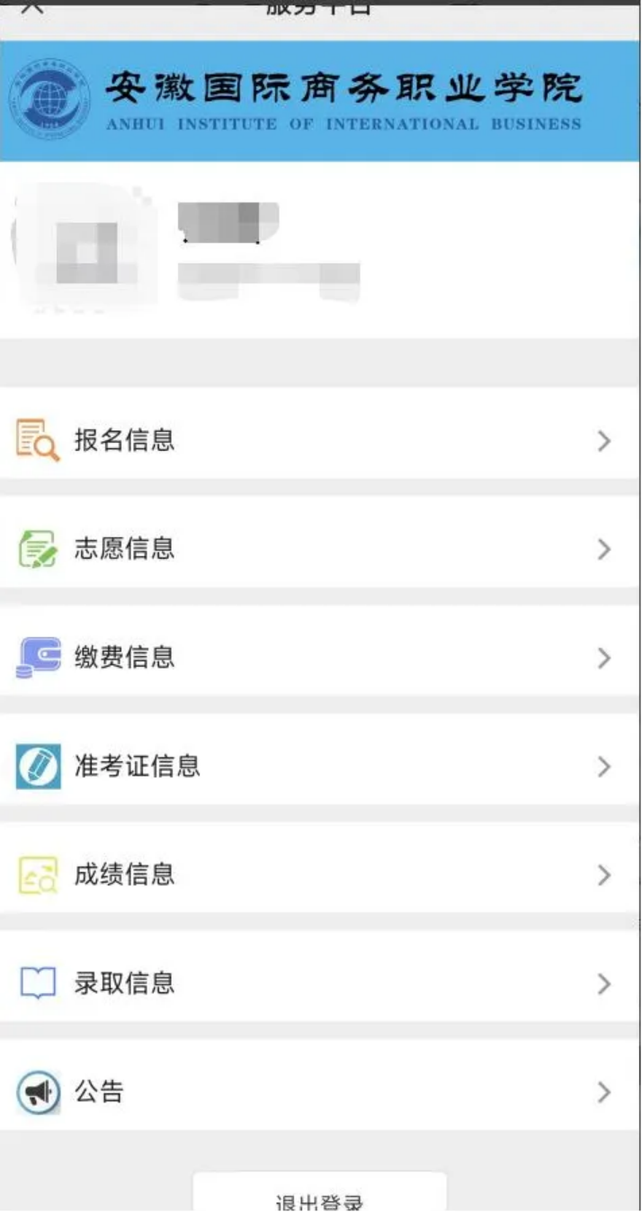 在菜单栏中选择“查询录取”,如在学院发布的有效时间范围内,可进行查看本人的录取结果、录取专业、录取时间等信息;
