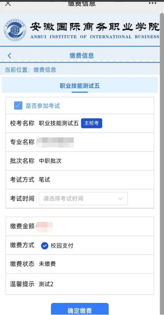 安徽国际商务职业学院2024年分类考试招生缴费通知