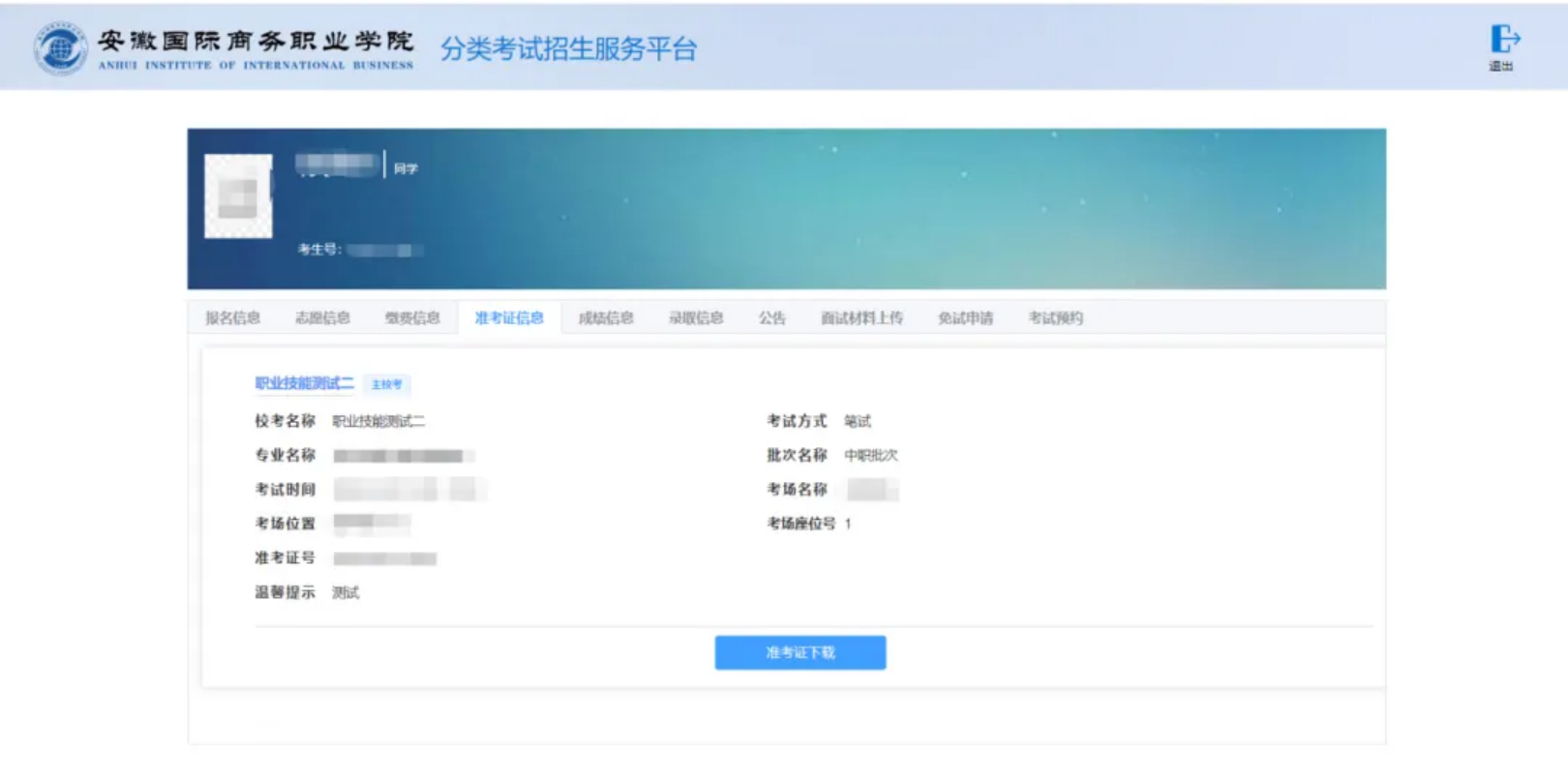 3、准考证下载