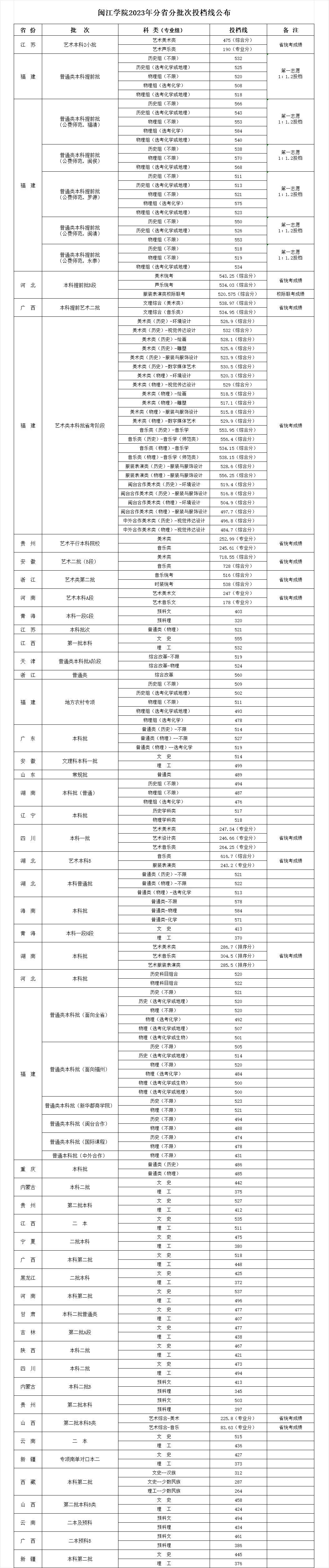 2023年 : 闽江学院2023年分省分批次投档线公布