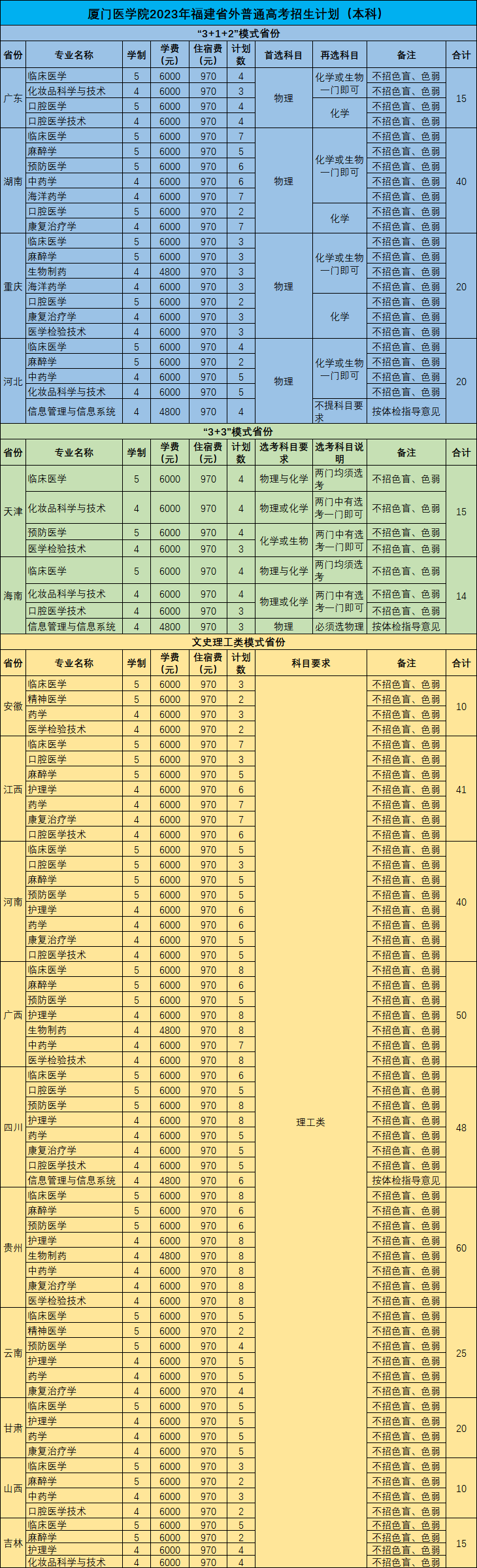 第八条厦门医学院2023年招生专业及计划以各省教育招生考试机构公布的为准。