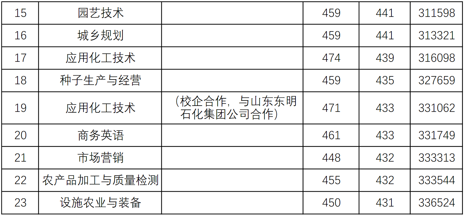 2023年 : 菏泽学院2023年普通类常规批第2次志愿(专科)山东省内各专业招生录取分数线