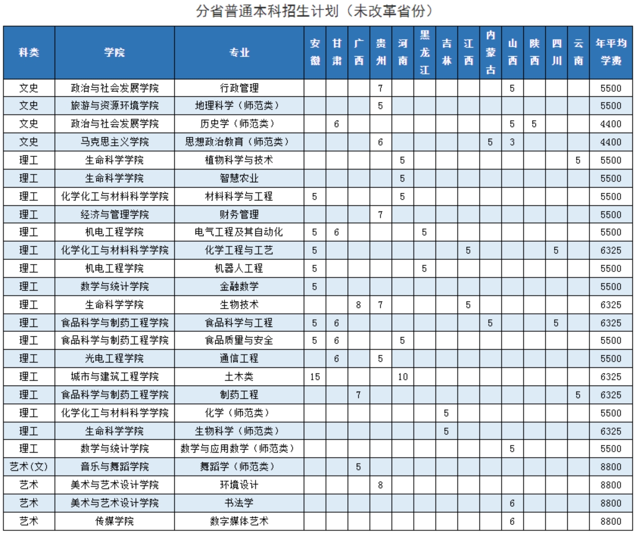 2023年学校面向全国25个省(市、自治区)招收普通本专科7900人,其中本科计划3900人(包含外省计划410人),专科计划4000人。