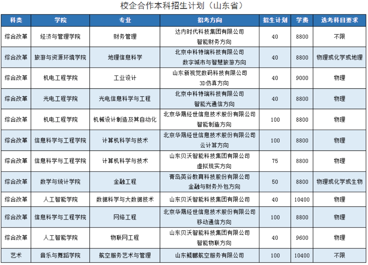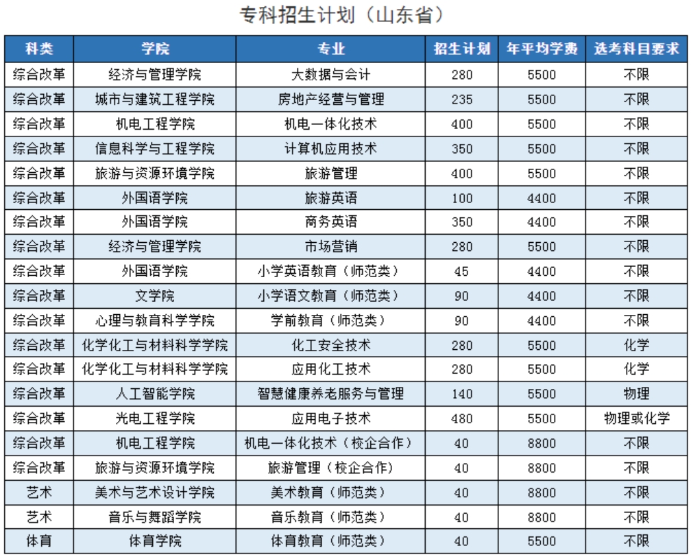 枣庄学院-2023年招生计划