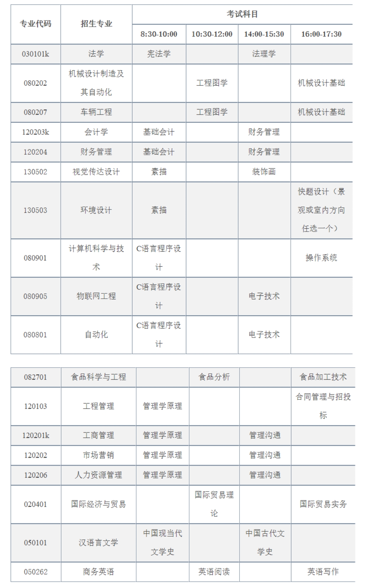 2.如考生选择报考的多个专业中,存在测试科目相同,且时间一致的,只需参加第一志愿测试,相同科目成绩共享。测试科目不同,成绩不共享。