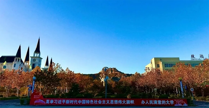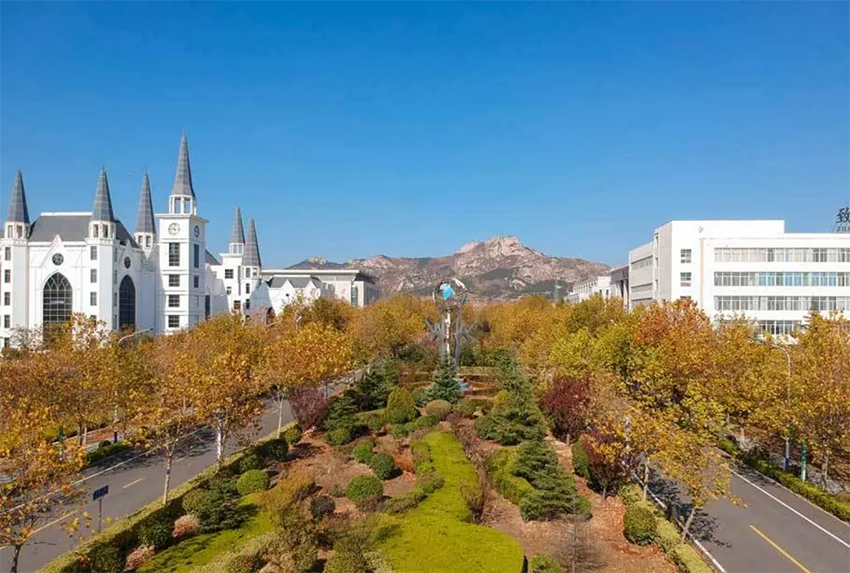 ◆目前,学校设威海和济南两个校区,主校区坐落在威海市国家4A级旅游度假区乳山银滩,背依多福山,面朝大海,风景秀丽,气候宜人。校区占地总面积3113亩,校舍建筑总面积85.8万平方米(含在建工程6.5万平方米)。设有外国语学院、国际交流学院、国际商学院、管理学院、信息工程学院、人工智能学院、城市学院、医护学院、文化传播学院、艺术学院、教育学院、继续教育学院、创新创业学院、武术学院、思政部、体育部等16个教学单位。开设67个本、专科专业,形成了文学、经济学、工学、管理学、法学、教育学、艺术学等多学科协调发展的专业建设格局。