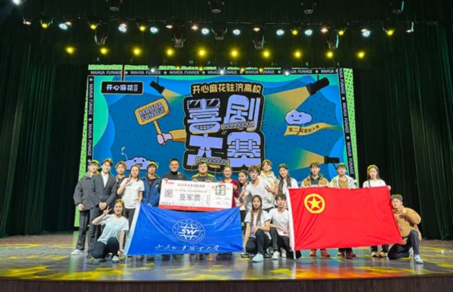 ▲山东外事职业大学荣获第二届开心麻花驻济高校喜剧大赛亚军