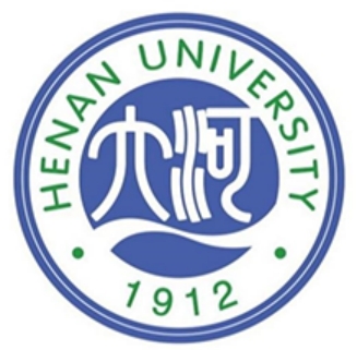 我校工艺美术系教师肖红于1994年设计此校徽图案,并于2022年7月再次升级完善该校徽图案。该校徽图案为正圆形,外圈与内圆为蓝色,象征理想与广阔的发展前景;中间黑体英文字母与下方的创校年号为绿色,代表教育与勃勃生机;蓝底下的“河大”两字为由右至左的篆书体,给人以悠久的历史文化感;校名下方的水浪,象征位于黄河岸边、中原文化与文明发祥地的河南大学历史久远、建设世界一流大学。
