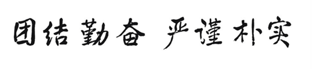 · 七七级校友王刘纯于2002年根据原校训字体书写 ·