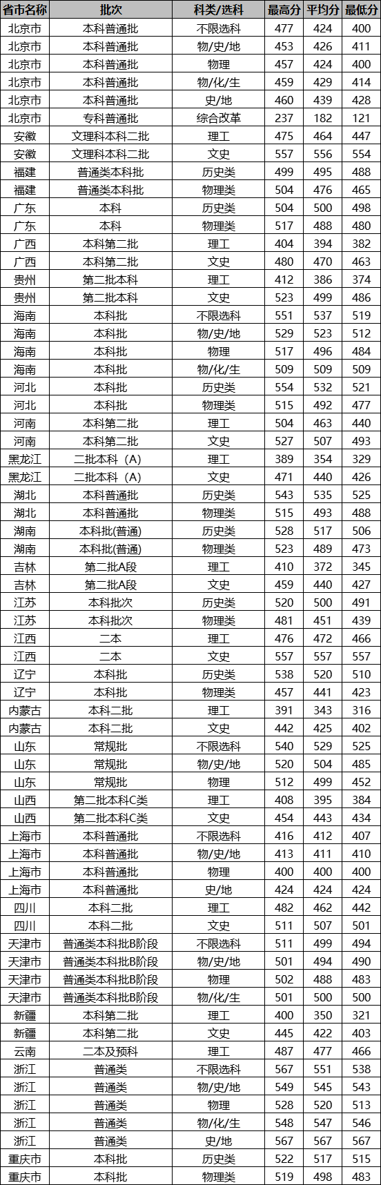 2021年 : 北京城市学院-2021年普通类录取分数统计