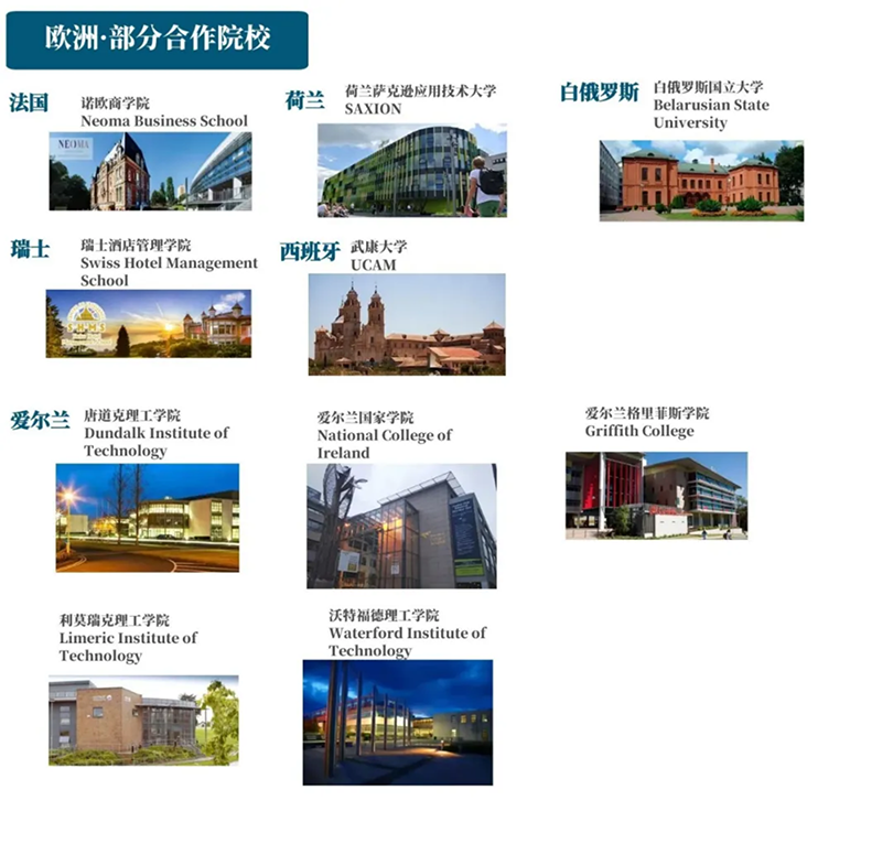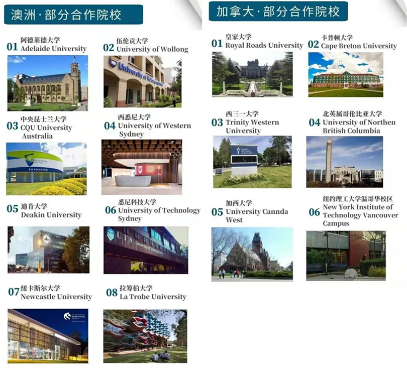 ●学校与全球10多个国家近百所海外高校建立合作伙伴关系,所有对接海外院校均被中华人民共和国教育部涉外监管信息网收录,为学生提供了更为广阔的国际化教育平台。