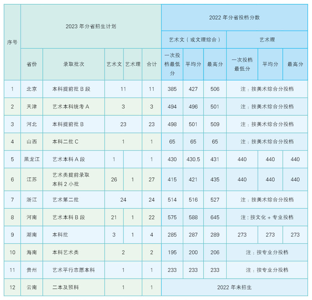 根据教育部统一下达的全日制普通高校招生计划,数字媒体艺术专业面向全国部分省份进行招生,2023年分省招生计划及2022年录取分数情况如下:
