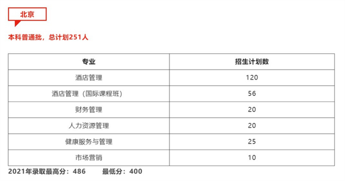 北京第二外国语学院中瑞酒店管理学院-2022年19个招生省市分专业招生计划