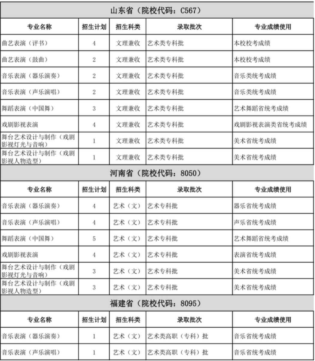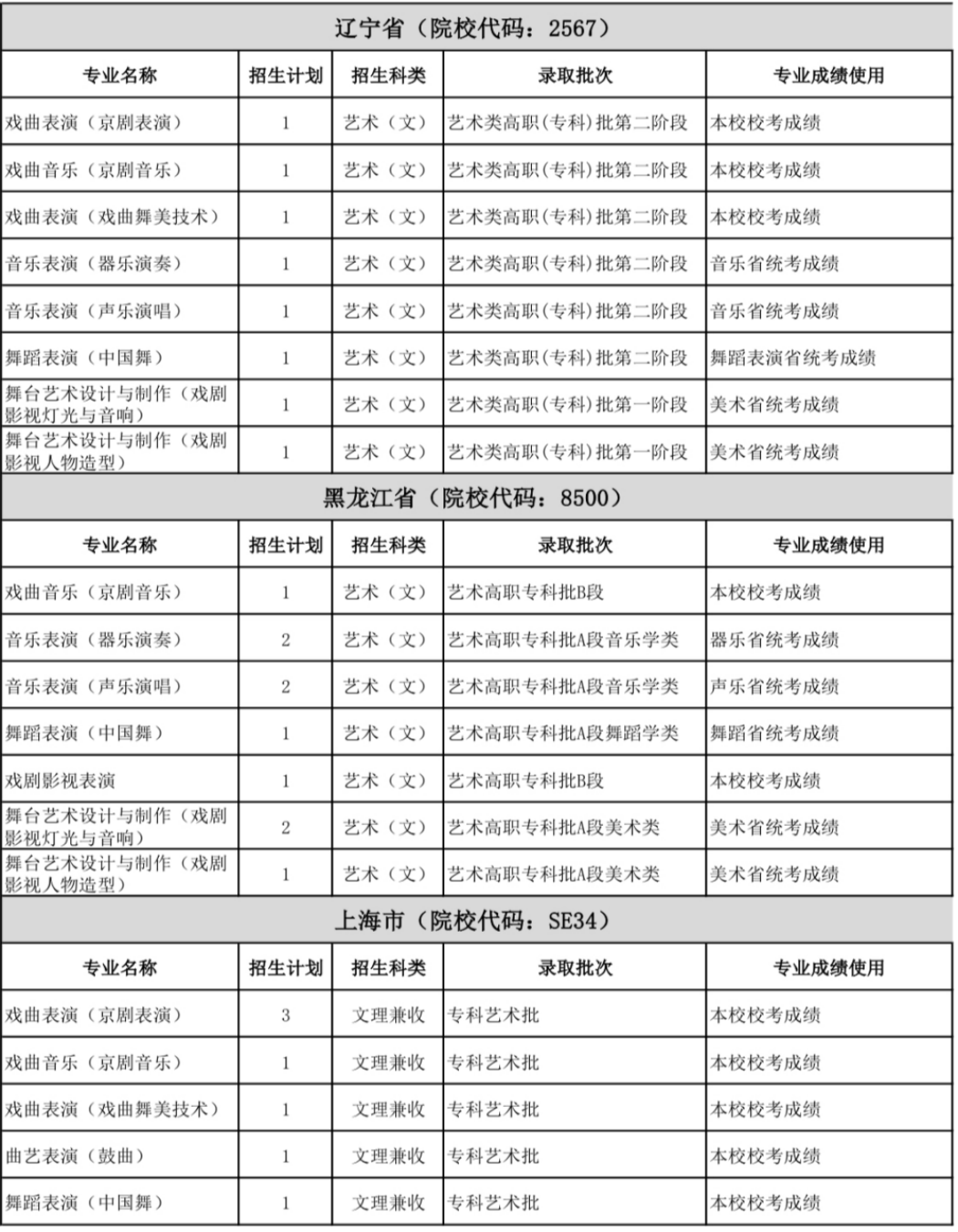 北京戏曲艺术职业学院2023年高职分省分专业招生计划和录取批次