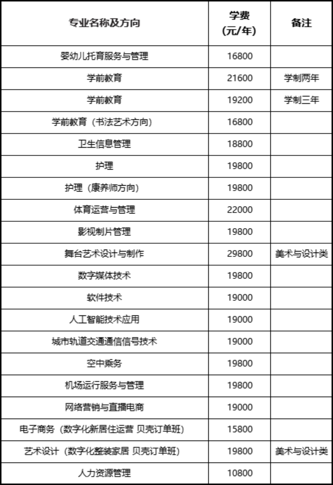 第十四条 我院2024年各专业学费、住宿费收费情况见下表: