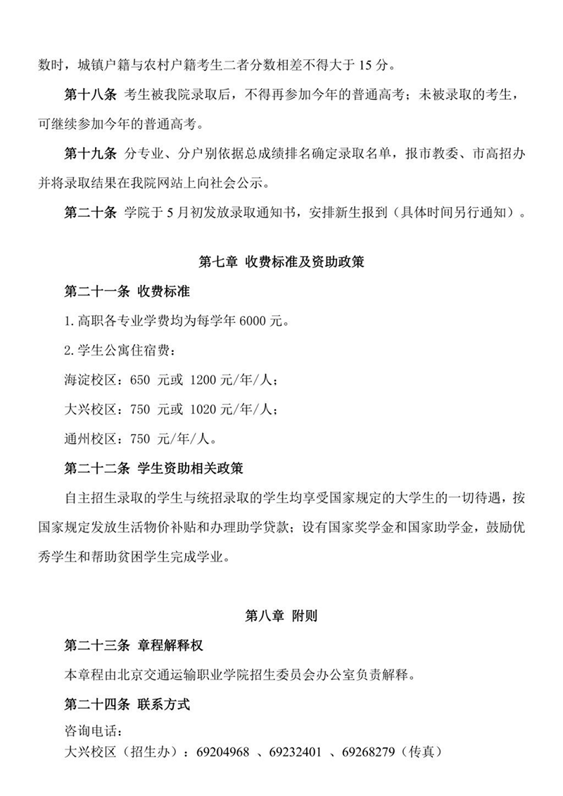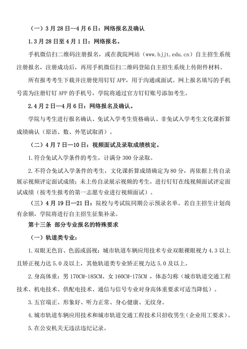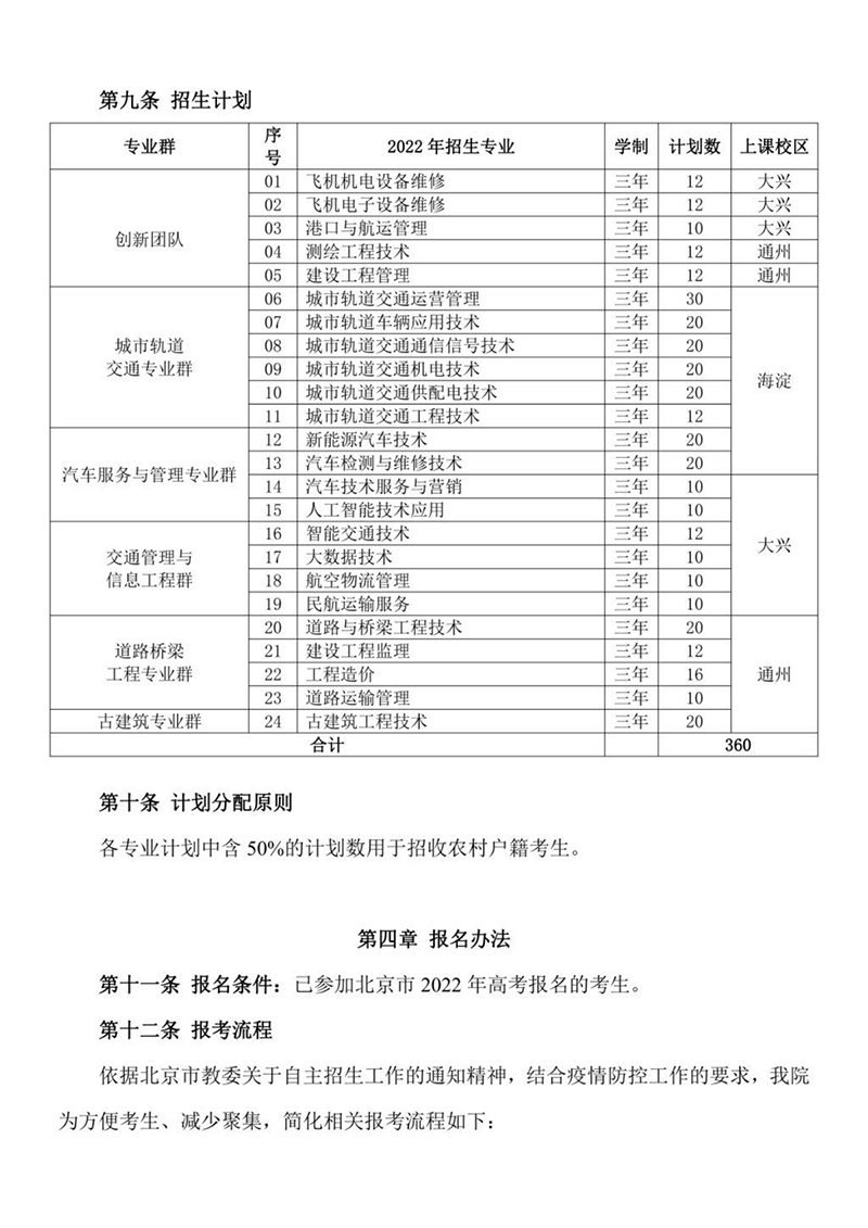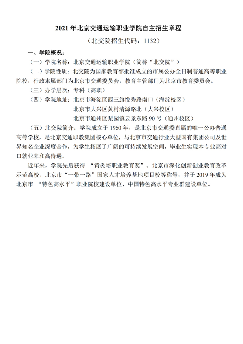 2022年 : 北京交通运输职业学院2022年自主招生章程