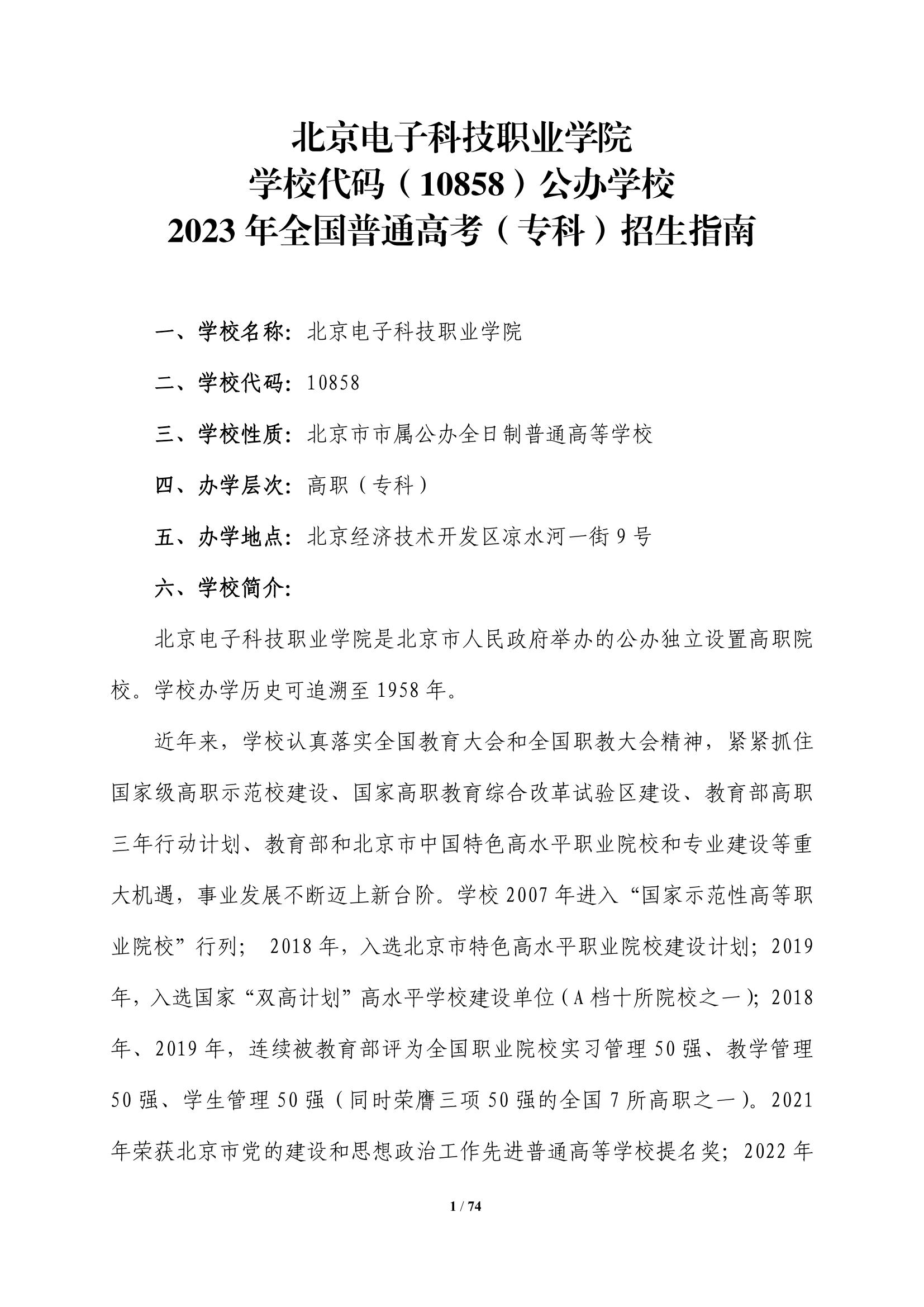 2023年 : 北京电子科技职业学院-2023年全国普通高考(专科)招生指南