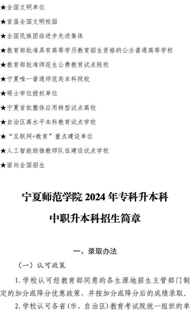 2024年 : 宁夏师范大学-2024年高职(专科)升本科、中职升本科招生简章