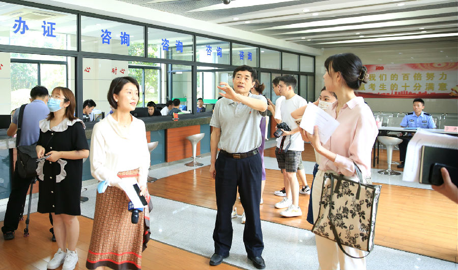 我省2021年高考录取正在有序进行中。7月30日上午,中国新闻社、浙江日报、浙江卫视等近十家省内外媒体探访高考招生录取现场,观摩我省 “阳光高考”招生录取的工作情况。