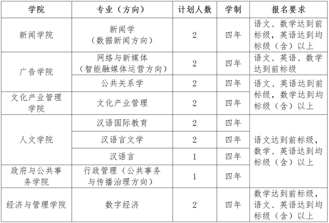 注:1.最终录取专业名称以我校2025年本科普通类型招生计划公布的专业名称为准。专业介绍请登录中国传媒大学本科招生网查询,网址:http://zszx.cuc.edu.cn/