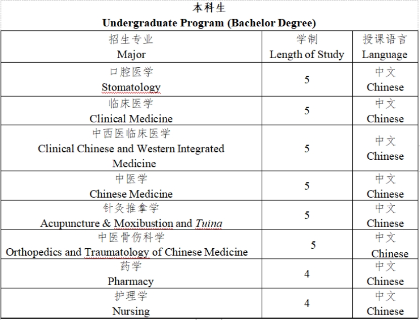 注:1.国际传统中医班若未达开班人数,则学生转入中 医学专业普通班就读。