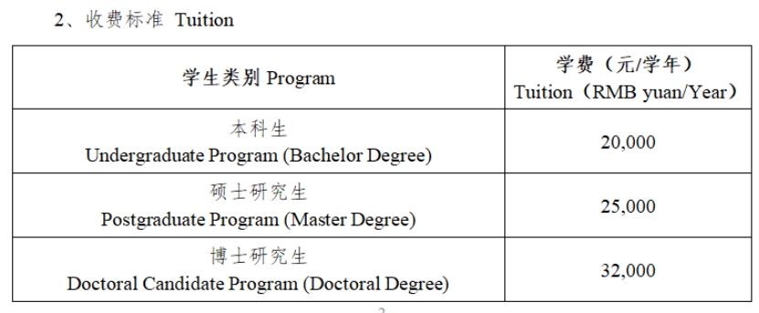 2. 住宿费:依据住宿条件而定,人民币 1300-5000 元 / 学年,基本设施包括床、衣柜、书桌椅、空调、热水器、网 络、洗手间等,24 小时物业值班。