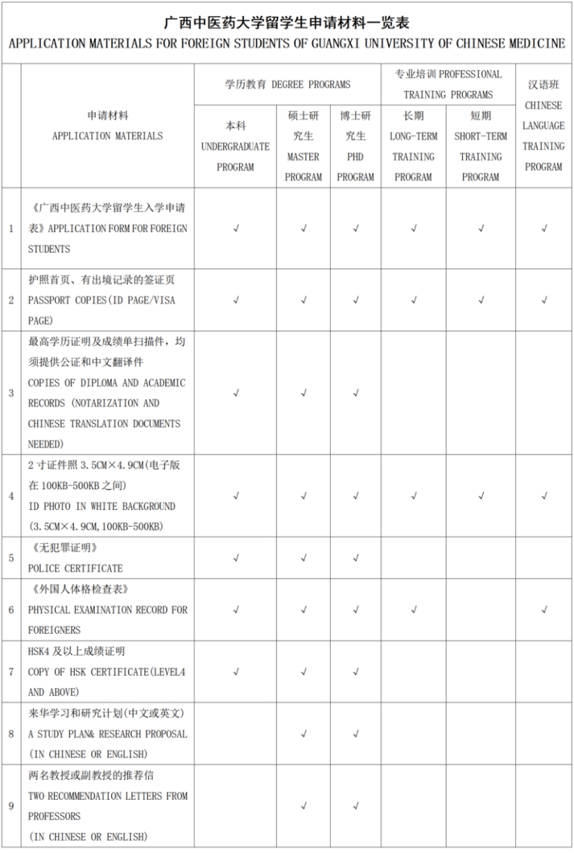 The applicant shall access to the official website of Guangxi University of Chinese Medicine to prepare the relevant materials mentioned above in accordance with the admission information, and then email an electronic version of application materials titled as“application program + applicant’s name and nationality”to fie@gxtcmu.edu.cn for a further review.